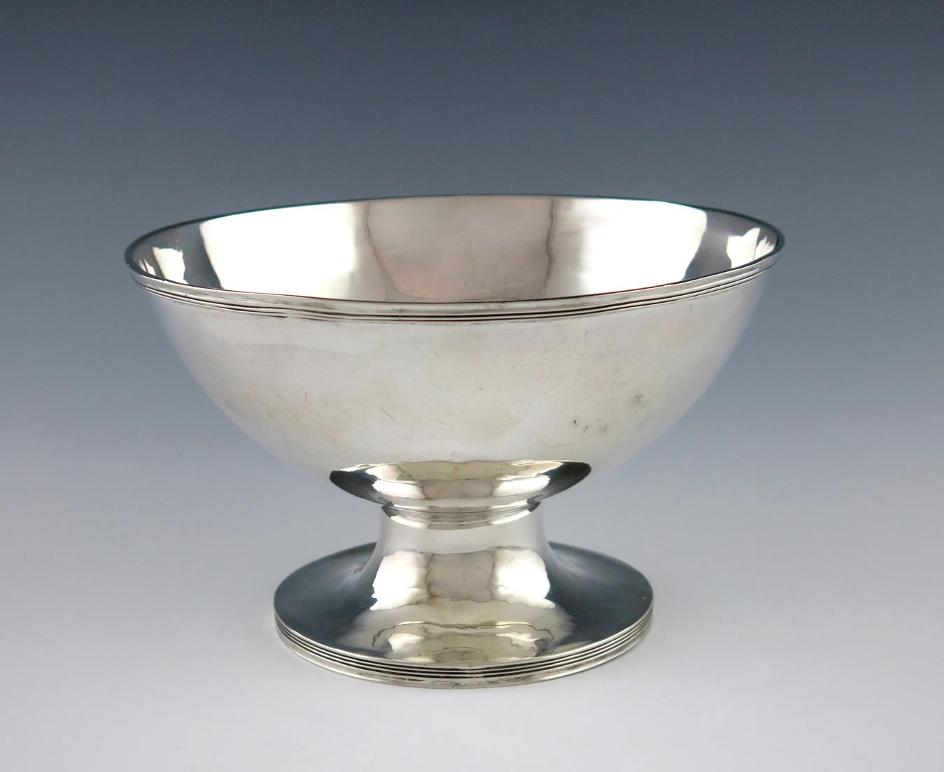 tapering circular form, on a raised circular pedestal base, reeded borders, diameter 17.8cm, height 11cm, approx. weight 9.7oz.