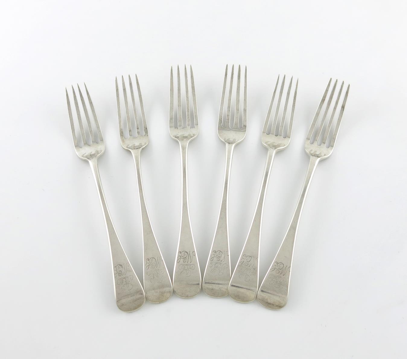 A set of six George III Scottish provincial silver Old English pattern table forks