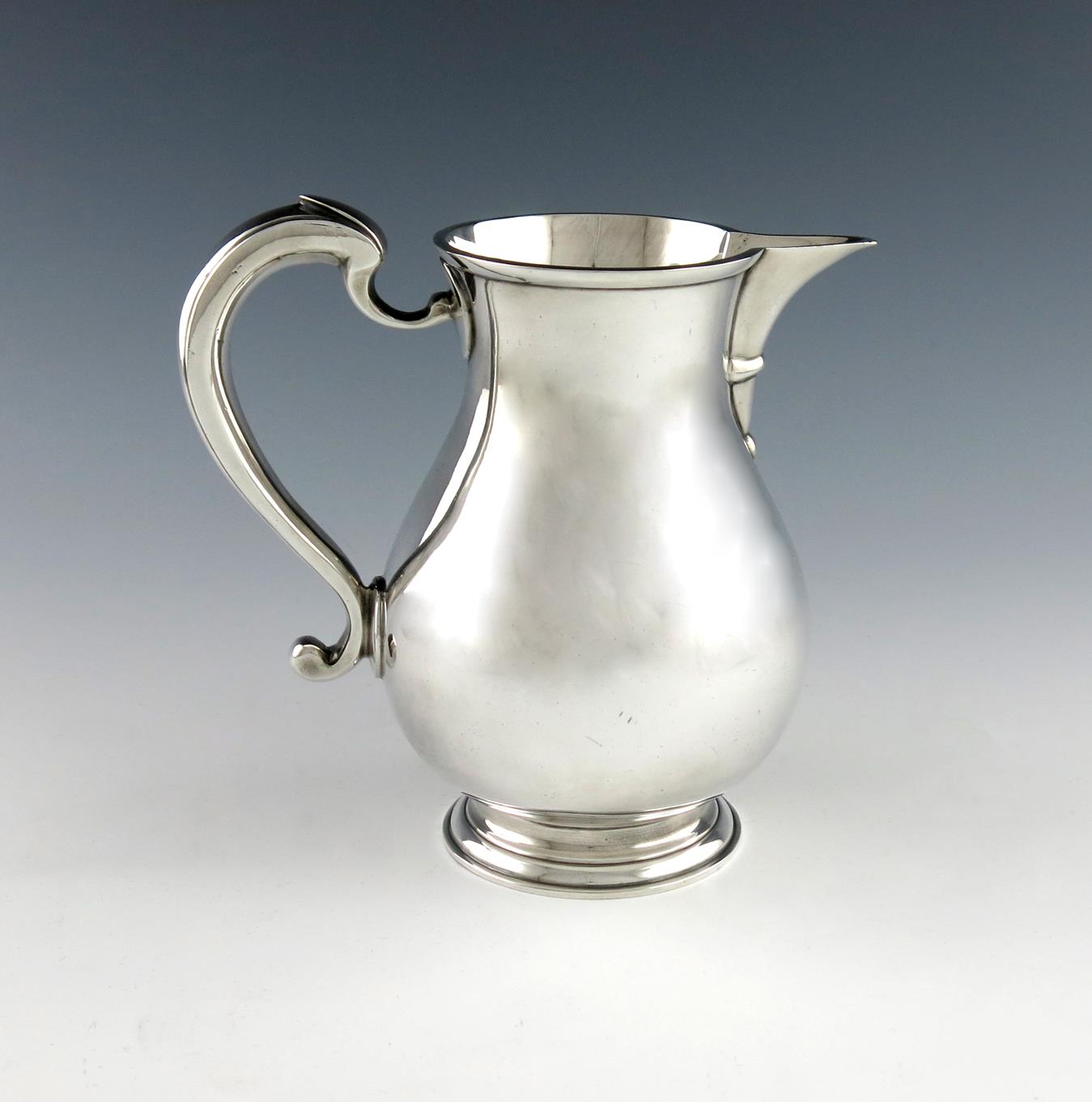 in the George II manner, baluster form, scroll handle, on a raised circular foot, height 18.5cm.