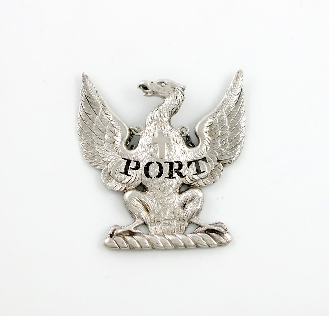 modelled as an eagle with spread wings, the breast with a cross, pierced 'PORT', height 6.5cm, approx. weight 0.9oz.