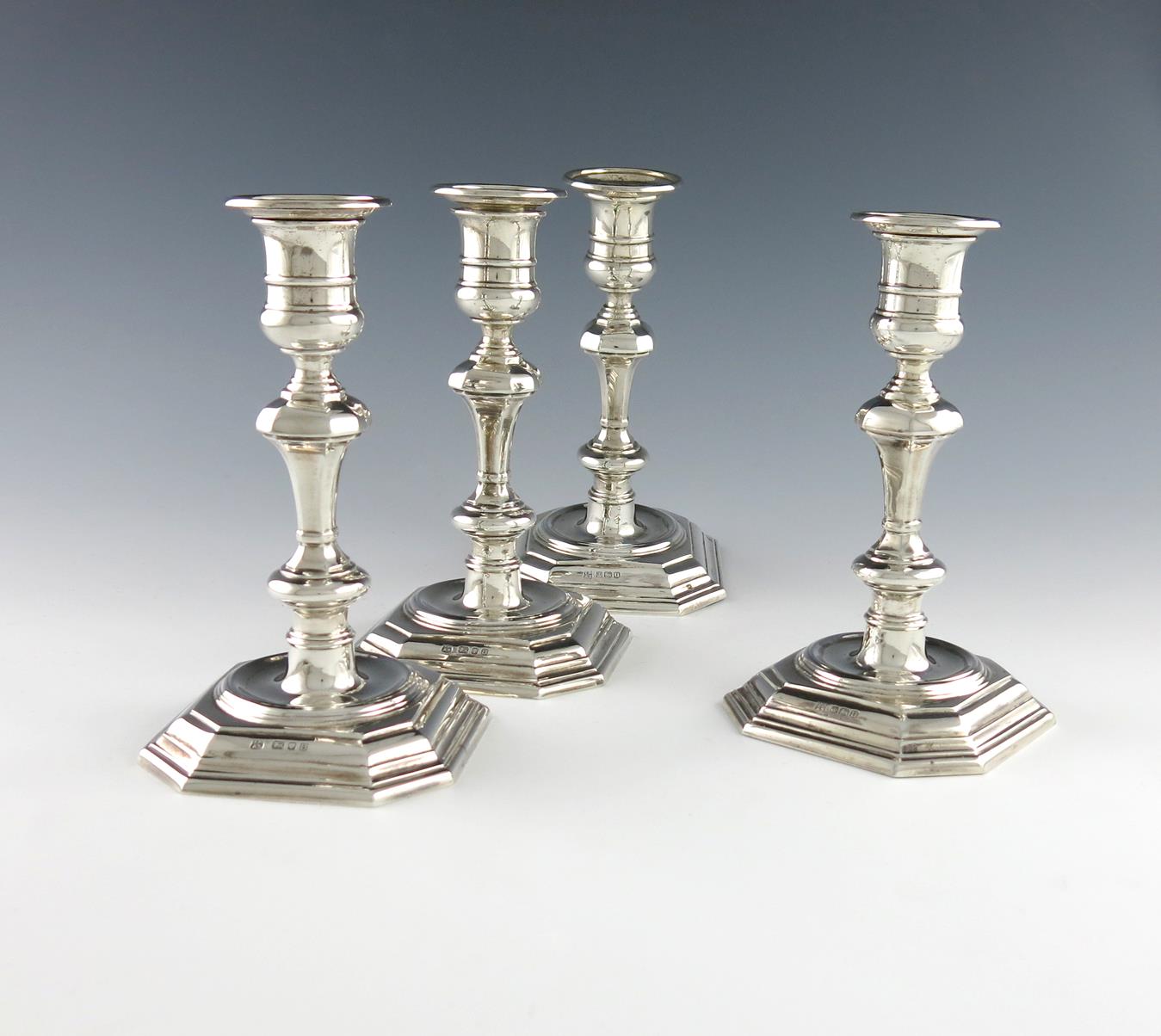 A matched set of four silver candlesticks,
