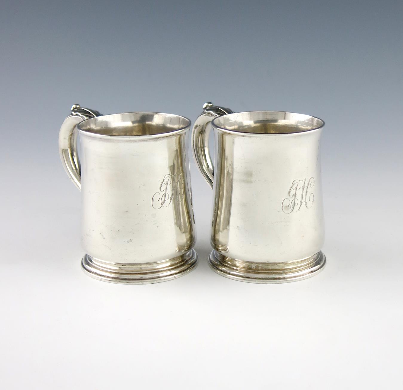 A pair of 18th century silver mugs