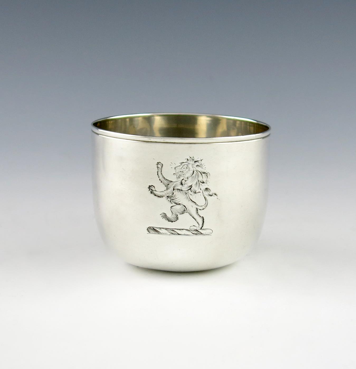 circular form, engraved with a large crest, height 7.3cm, approx. weight 7.5oz.