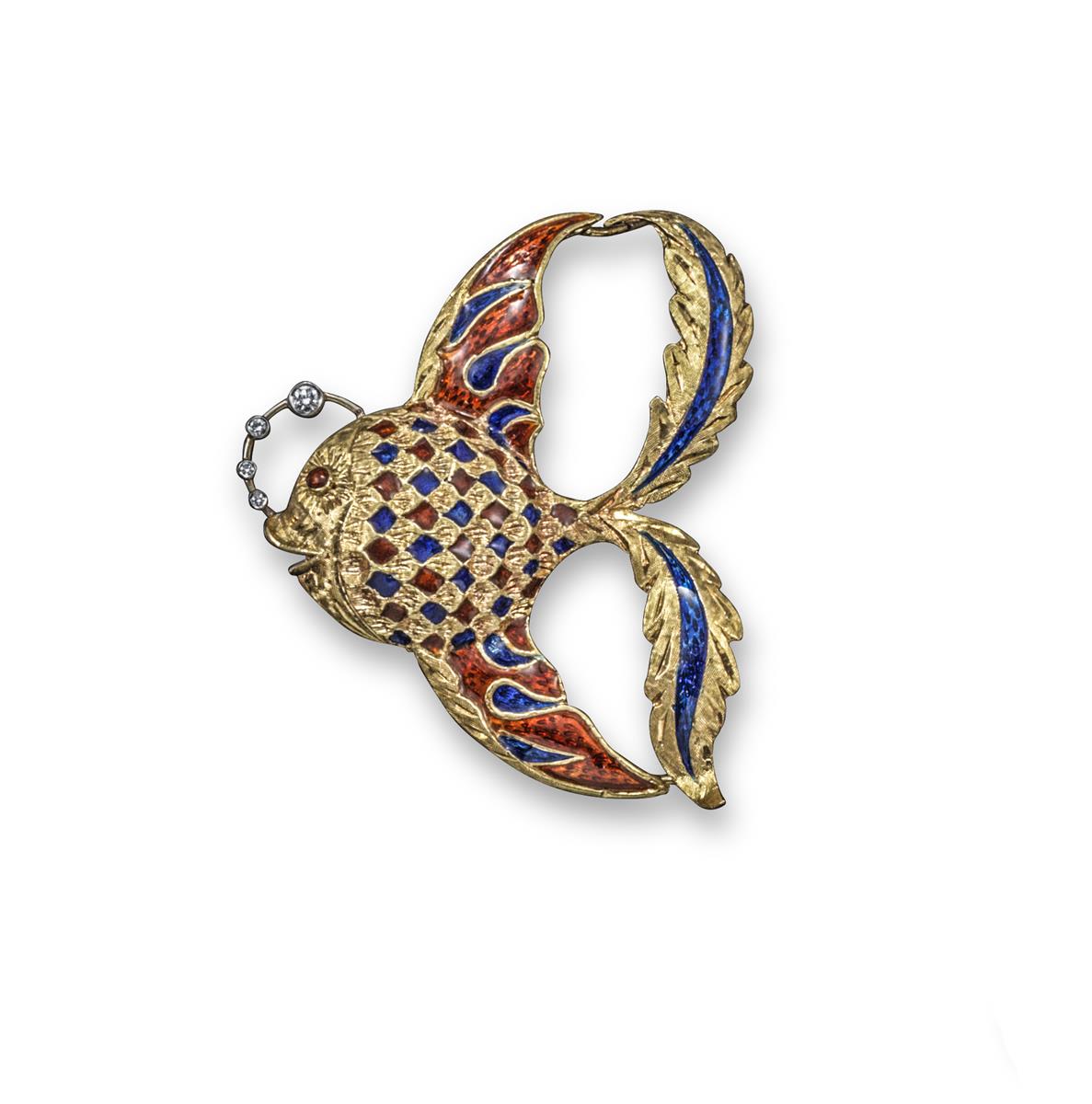 A gold and enamel fish brooch by Cartier