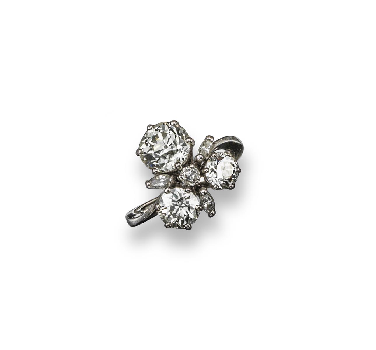 A diamond cluster ring, the three principal circular-cut diamonds weigh approximately 1.90, 1.00 and 0.60 cts, set in white gold with inner re-sizing sleeve. Size P.