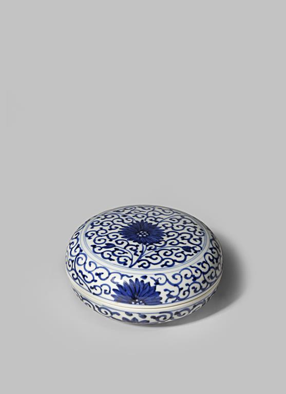A CHINESE BLUE AND WHITE SEAL PASTE BOX AND COVER PROBABLY KANGXI The plain circular body painted...