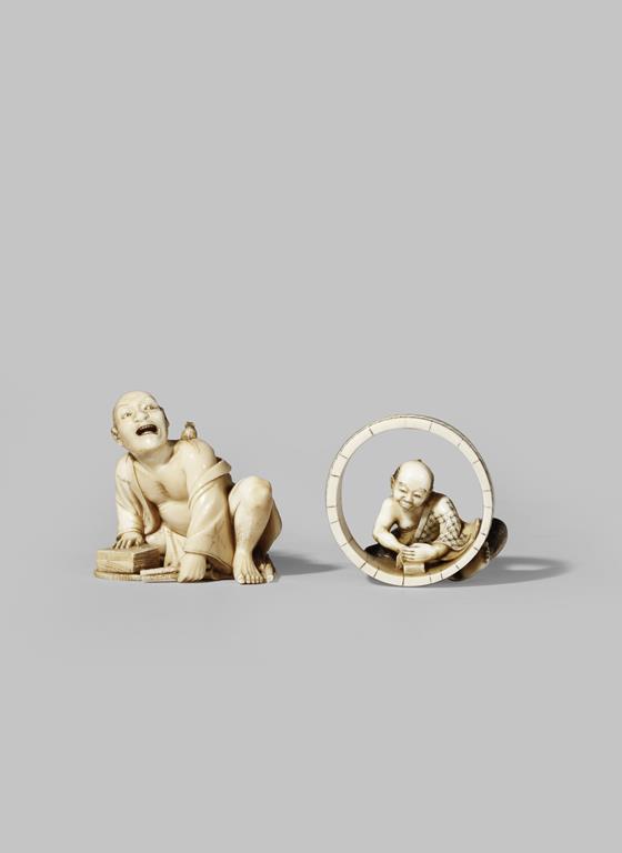 λ TWO SMALL JAPANESE IVORY OKIMONO