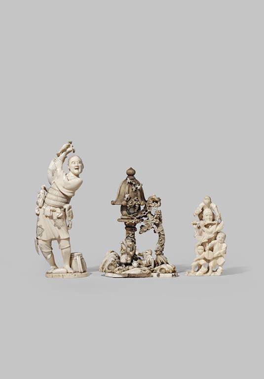 λ THREE JAPANESE IVORY OKIMONO