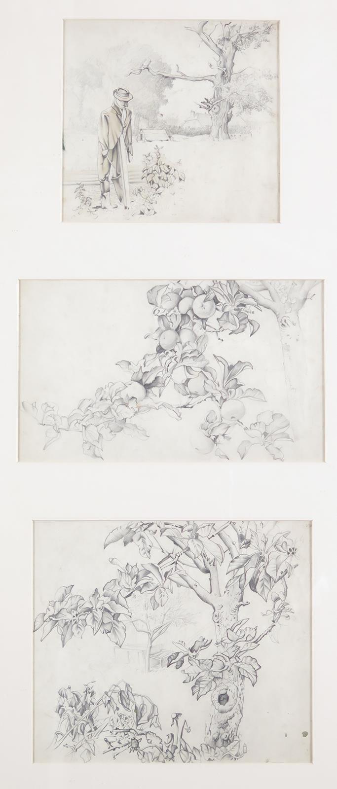 ‡Harry Epworth Allen (1894-1958) Studies of fruit trees and a scarecrow by an ancient oak Three