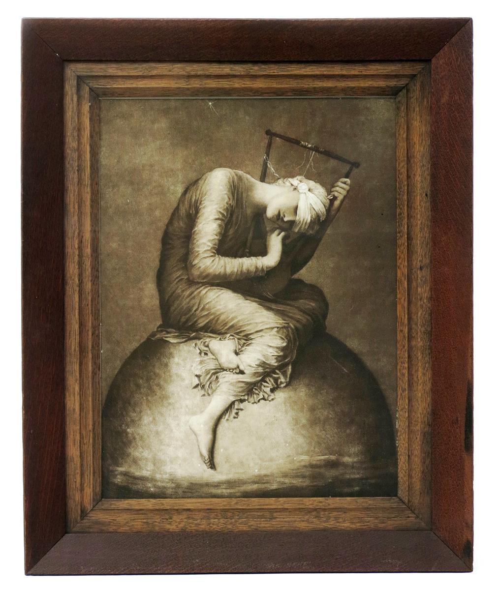 a sepia toned print from the painting probably published by Frederick Hollyer, in original oak frame,
