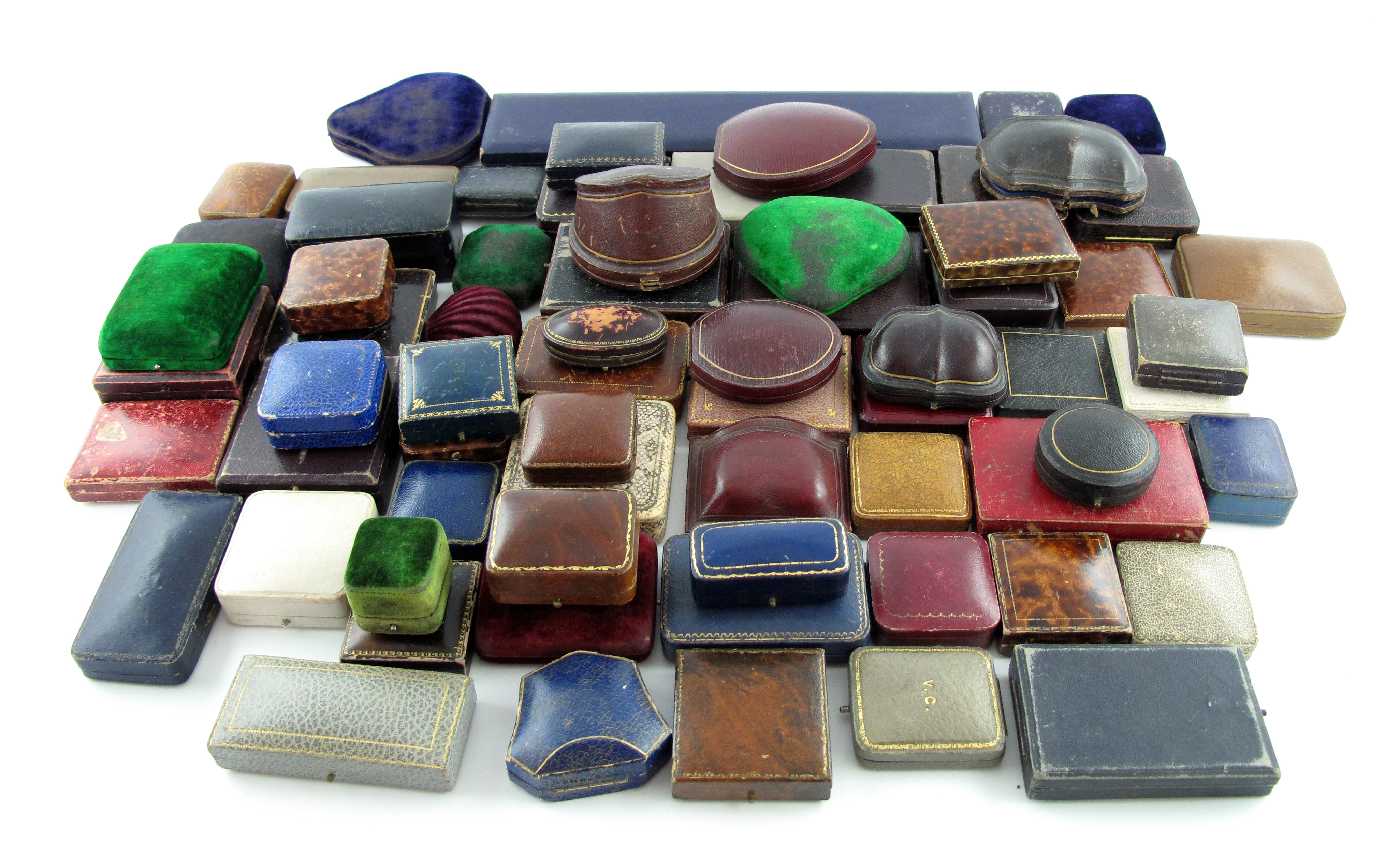 Seventy-nine assorted jewellery boxes, including two Cartier ring boxes.