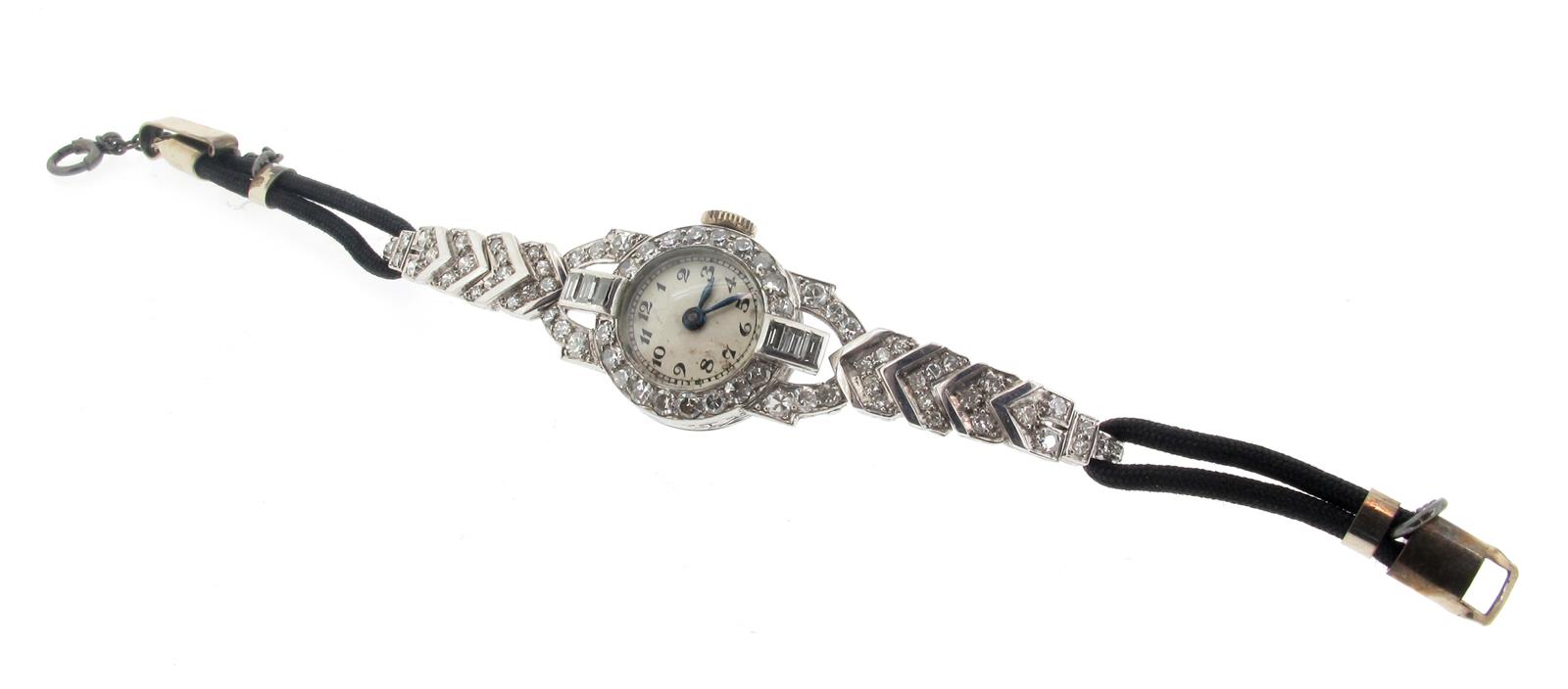 A ladies Art Deco diamond-set platinum dress wristwatch