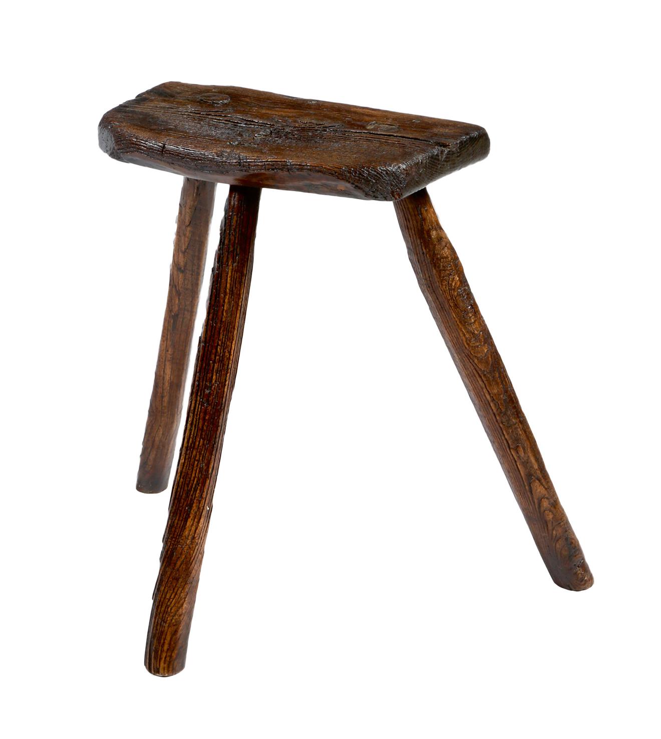 A primitive elm dairy stool