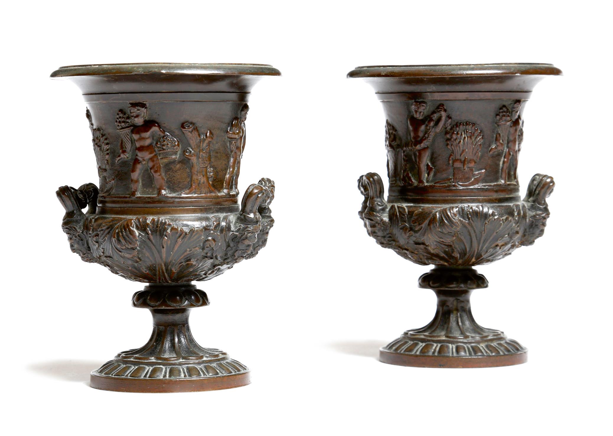 A pair of 19th century French Grand Tour bronze Medici type urns