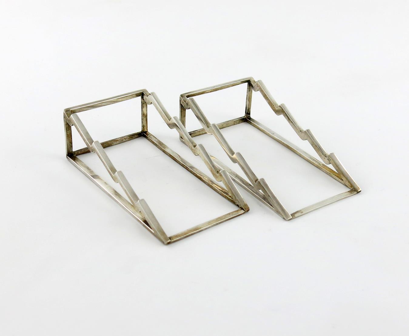 rectangular form, zig-zag border, the bases inscribed, 'For the second best pen of South Down Shearling Ewes shewn at Swafham, in July 1804', length 11cm, approx. weight 4.9oz. (2)