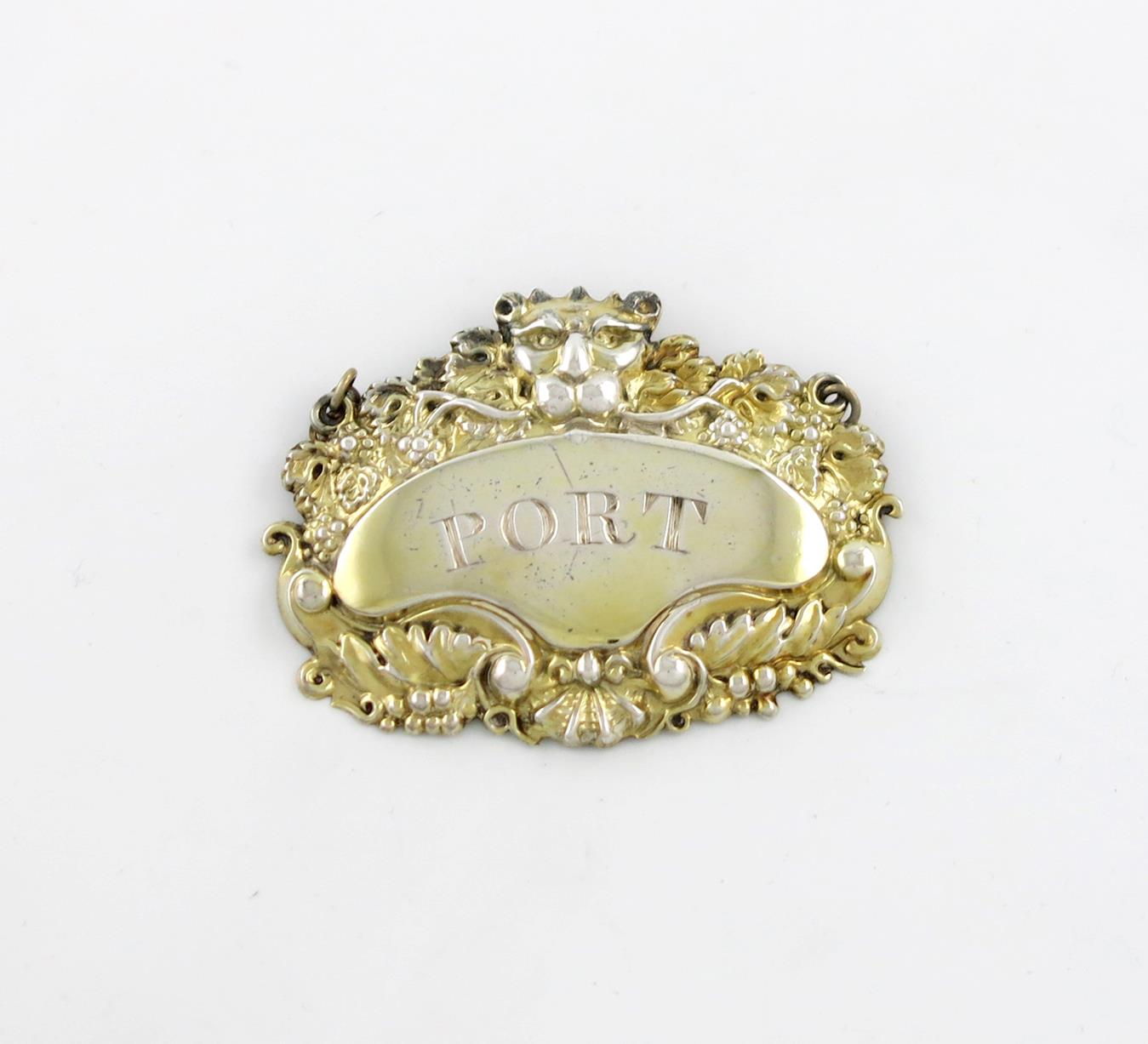 shaped oval form, foliate and shell borders, mounted with a lion's head, incised 'PORT', length 6.8cm, approx. weight 1.4oz.