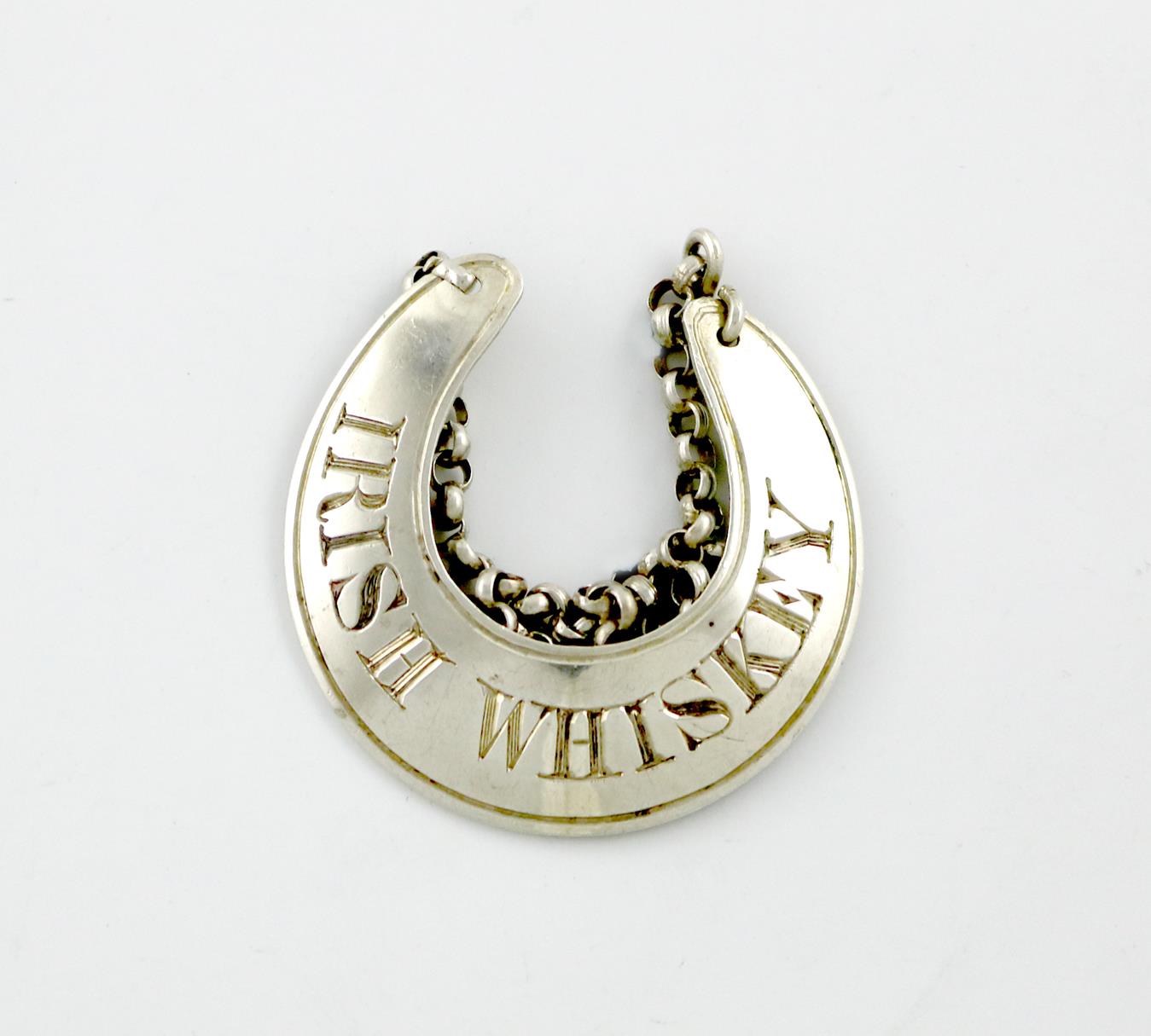 crescent form, incised 'IRISH WHISKEY', length 3.7cm, approx. weight 0.2oz.