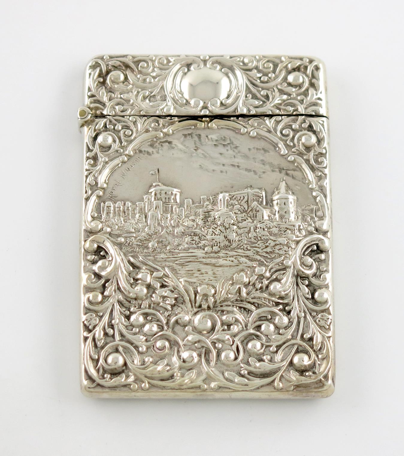 An Edwardian silver castle-top card case, Windsor Castle,