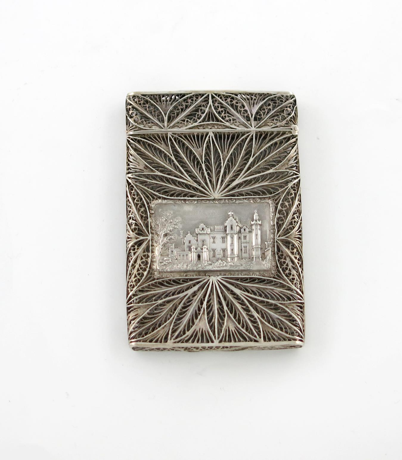 A Victorian silver filigree 'castle-top' card case, Newstead Abbey and Abbotsford,
