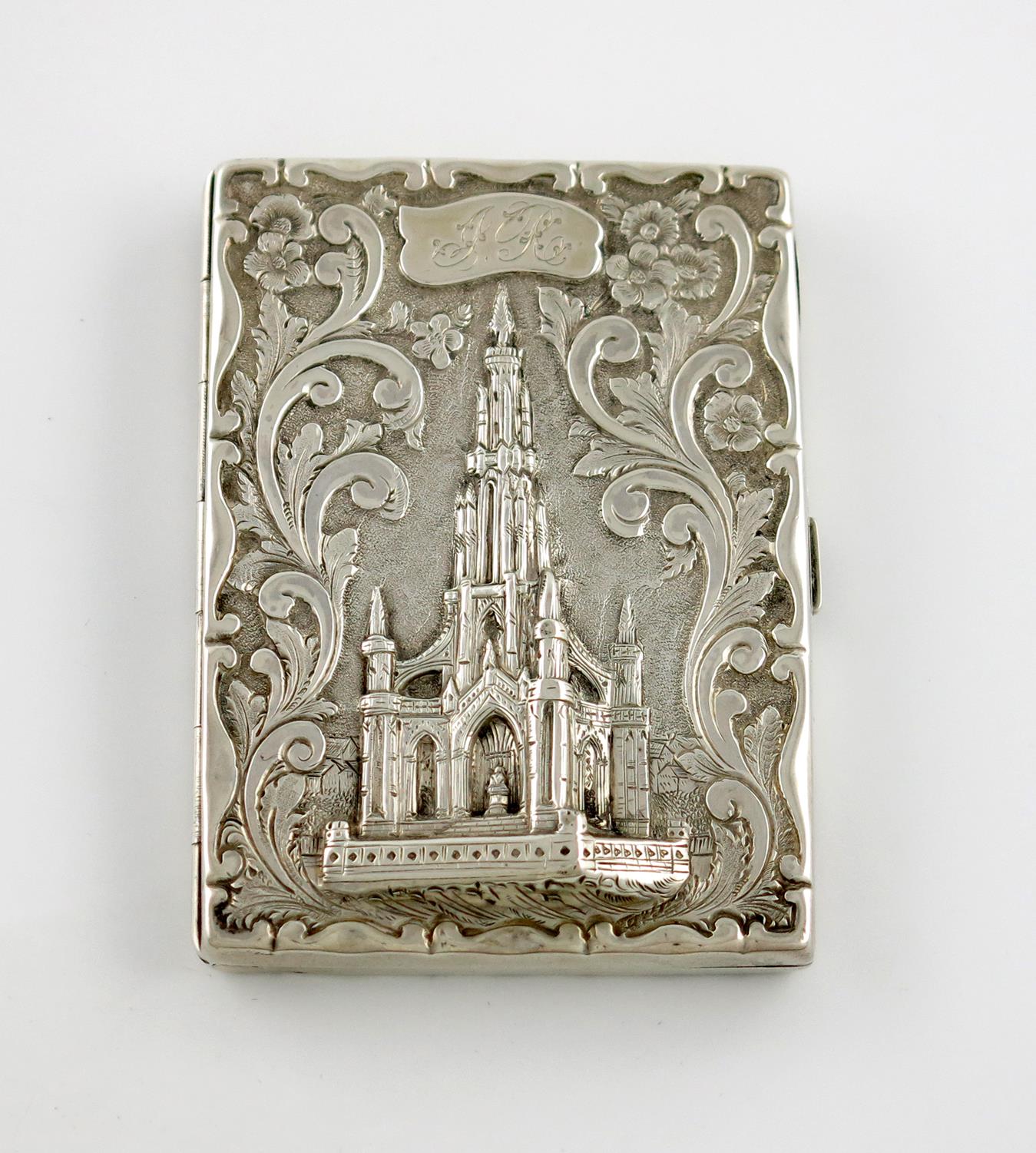 A Victorian silver 'castle-top' card case, The Scott Memorial,