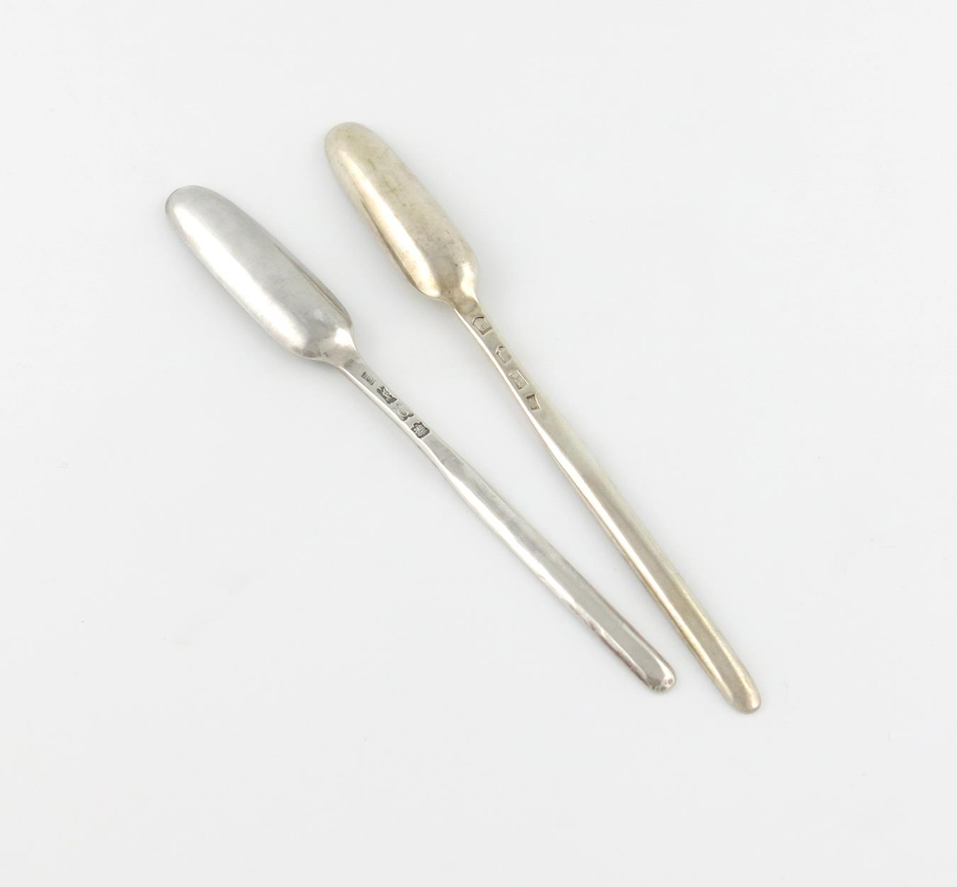 conventional form, plus another George II silver marrow scoop, by John Gorham, London 1730, approx. total weight 3.6oz. (2)