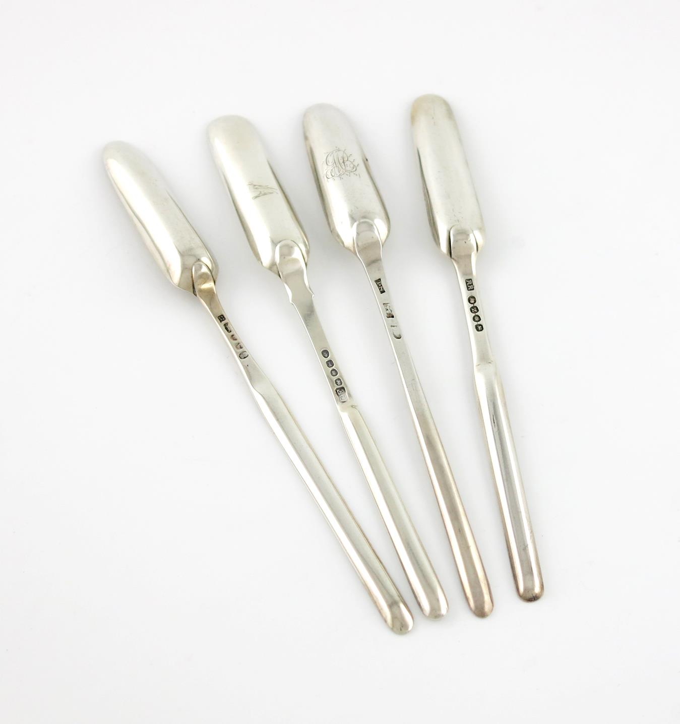 comprising: one by Peter and Ann Bateman, London 1793, plus one with Bright-cut decoration, date letter worn, plus two of conventional form, London 1808 and 1814, one with a crest and one initialled, approx. total weight 5.4oz. (4)