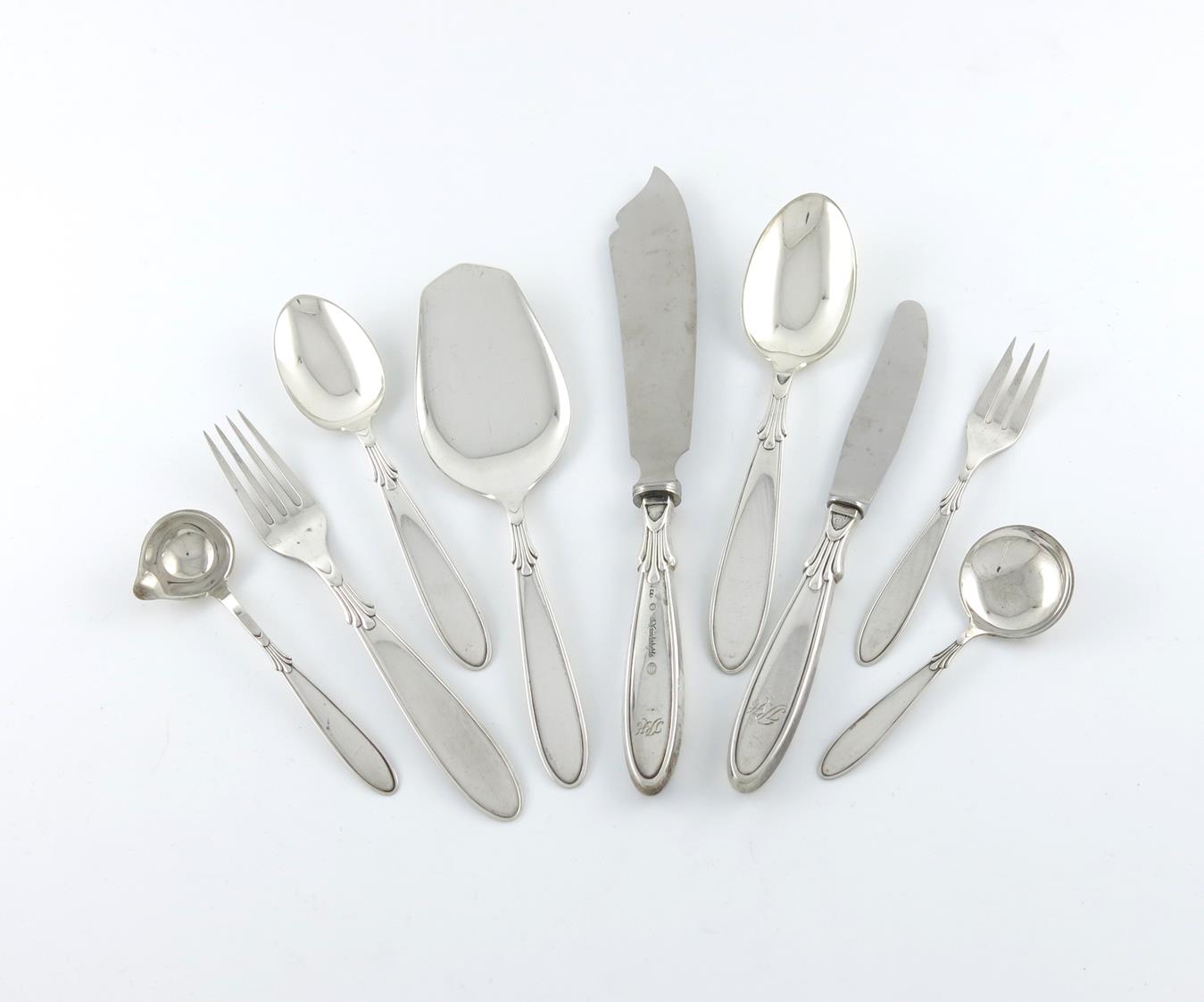 A Danish silver part canteen for twelve