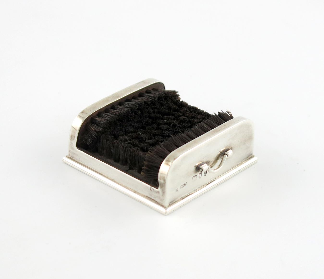 modelled as a boot cleaner, of rectangular form, with side handles and bristles, length 4.8cm