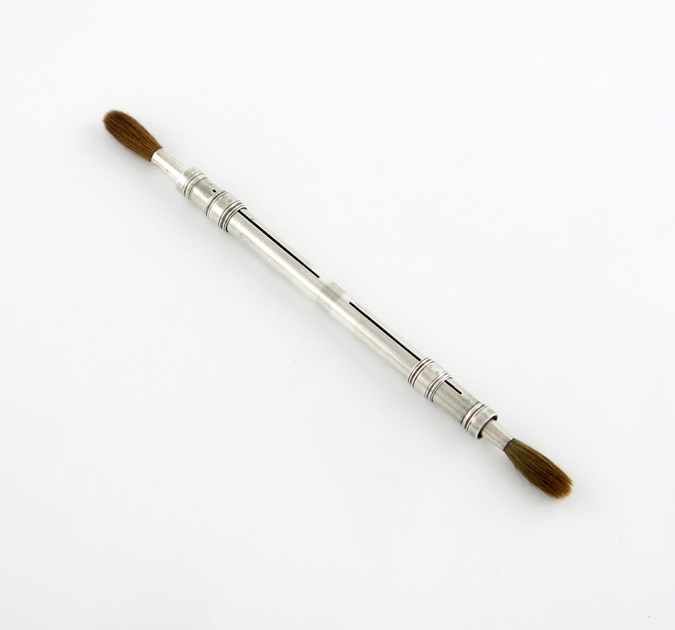 cylindrical form, each end with a slide-out paint brush, length closed 11.7cm, approx. weight 0.7oz.