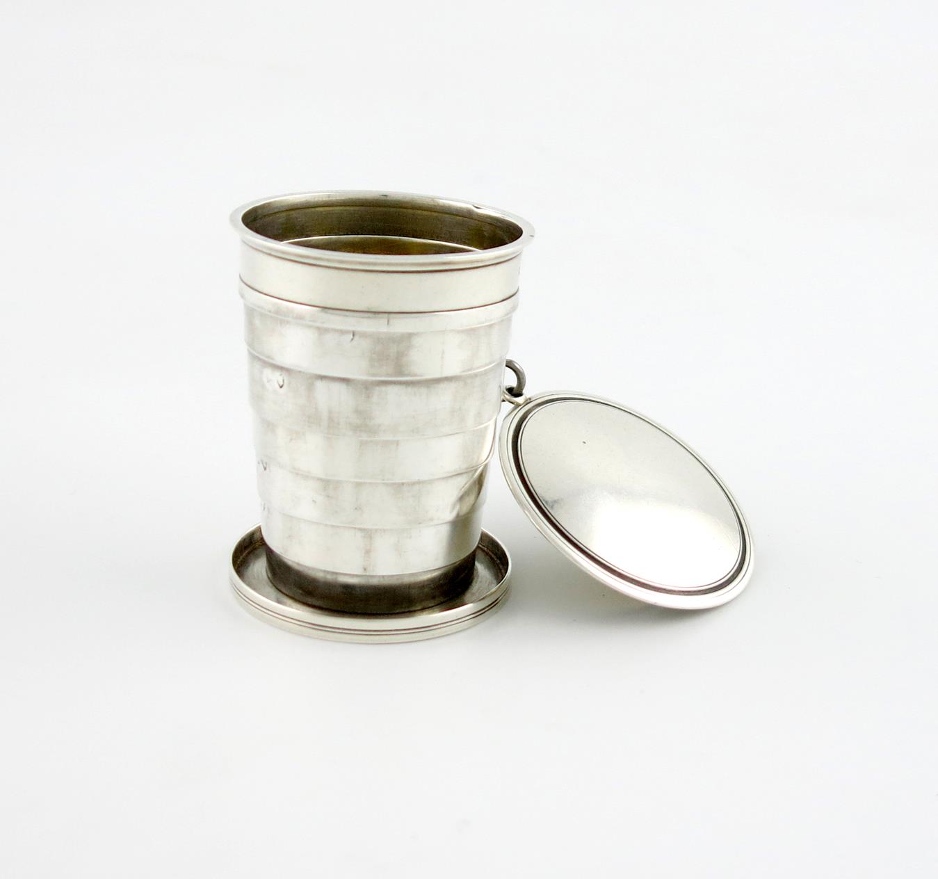 tapering circular form, with seven sections and a cover with a chain attachment, height extended 5.5cm, Approx. weight 1.7oz.