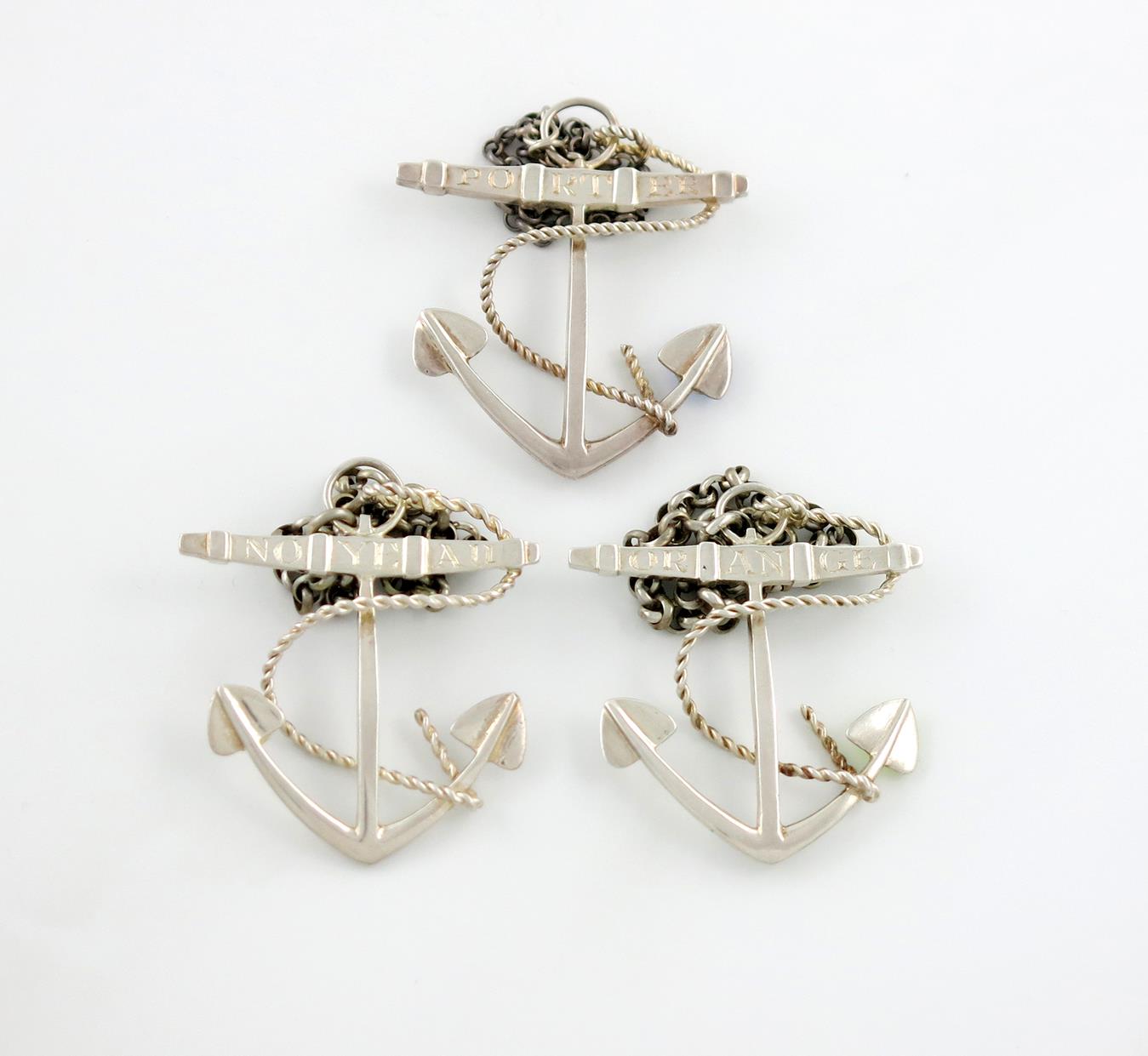the fouled anchors incised 'ORANGE', 'NOYEAU' and 'PORTER', length 5.5cm, approx. weight 1.8oz. (3)