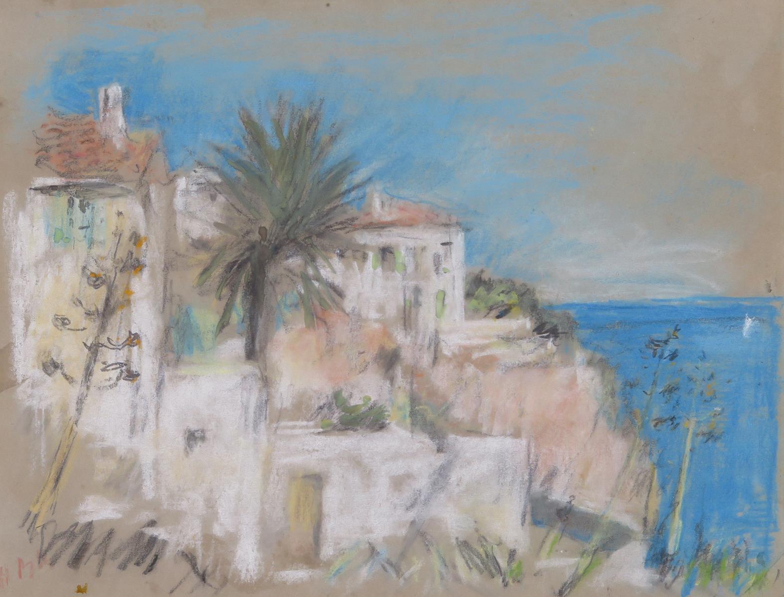 Hercules Brabazon Brabazon (1821-1906) On the Riveria Signed with initials Pastel on grey paper...
