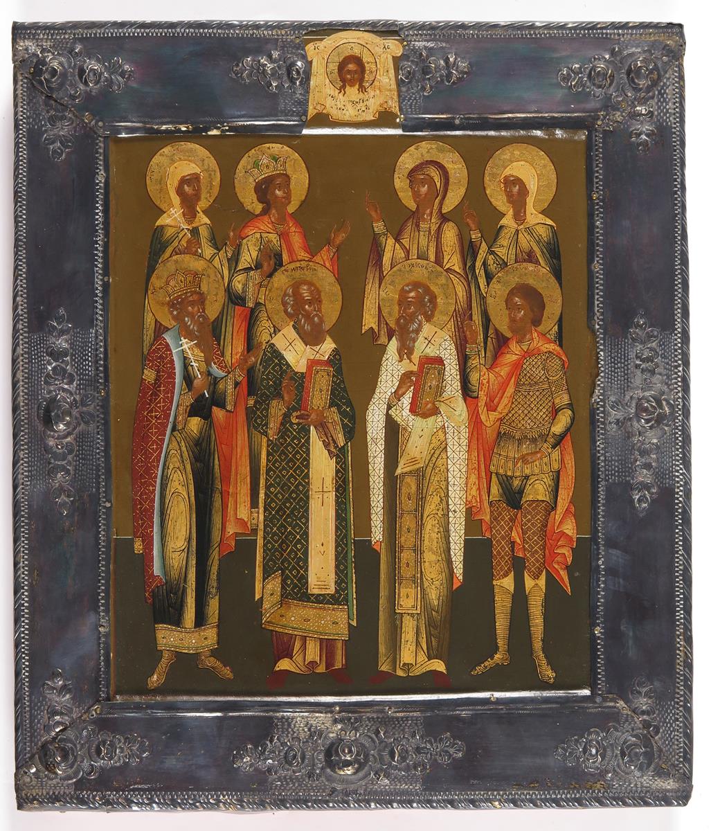 Icon of a group of eight saints, with King David with saints Nicholas, Basil and Nikita