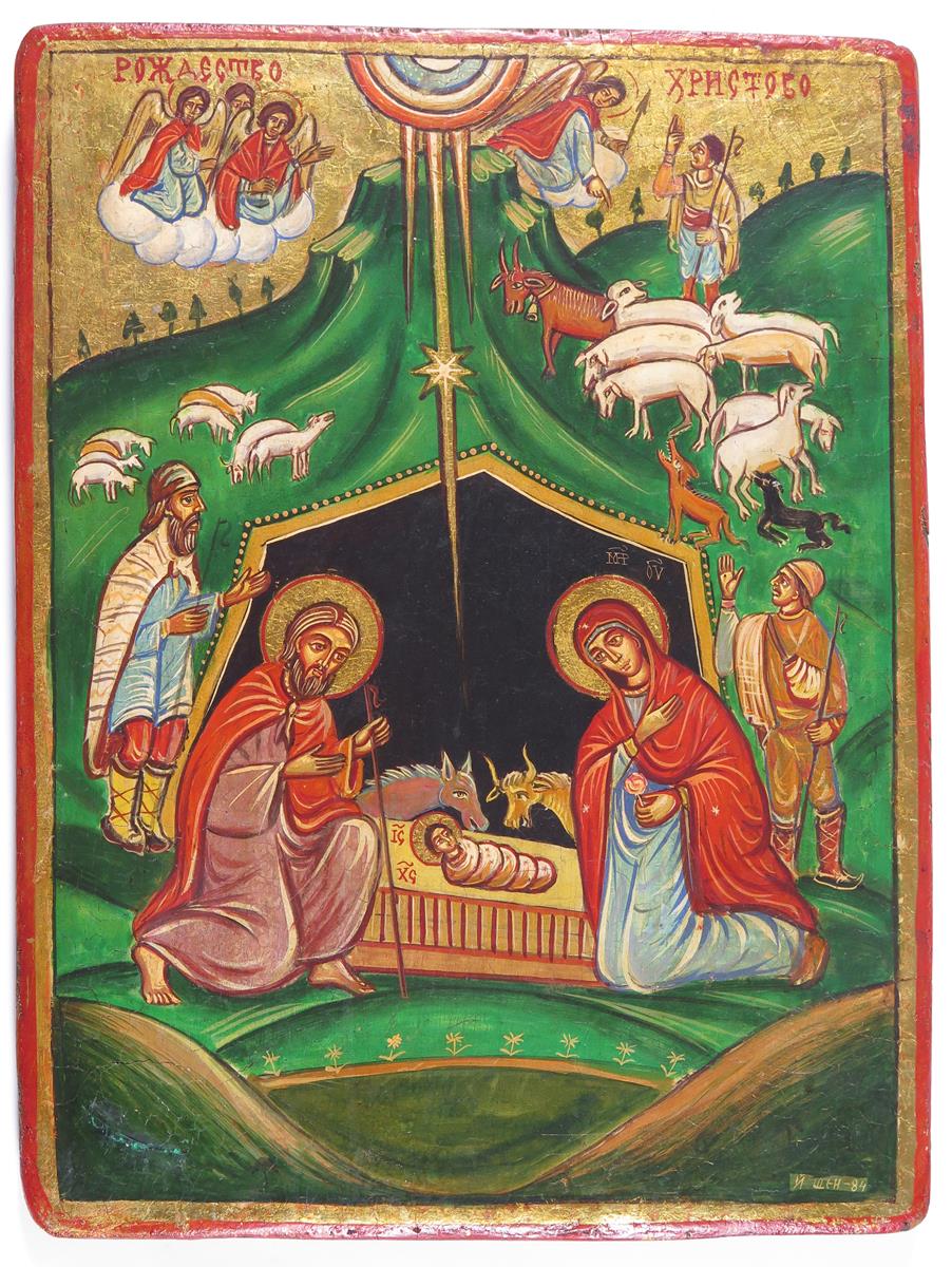 Jordan Shentov (Bulgarian 20th Century) Icon of The Nativity Painted and gilded on panel 43 x...