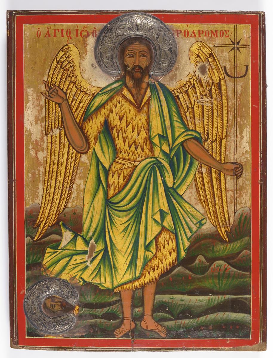 Russian School 19th Century Icon of St. John the Baptist Prodromos Painted and gilded on panel...