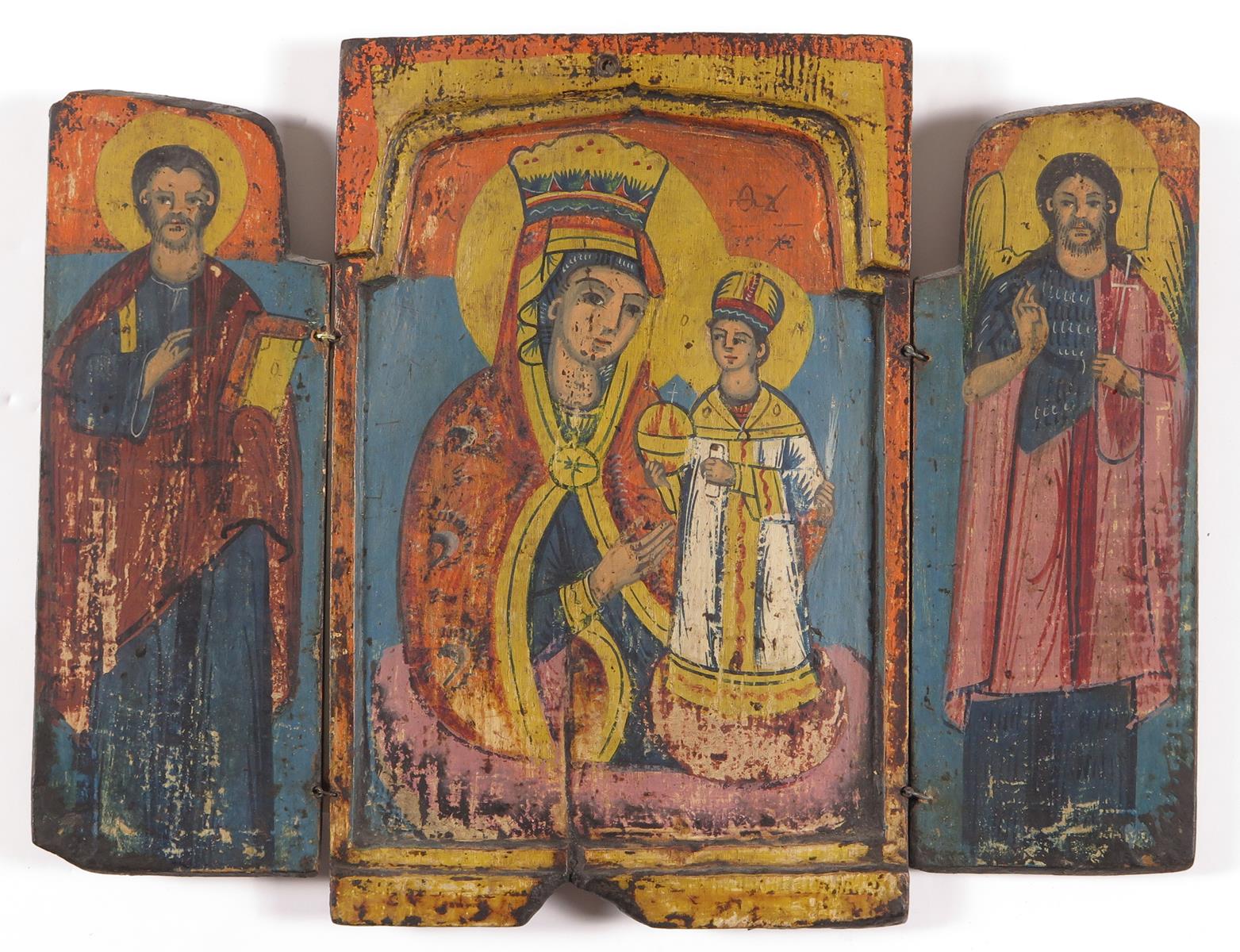 Greek School A triptych showing the Virgin and Child with saints in the wings Painted on panel 30...