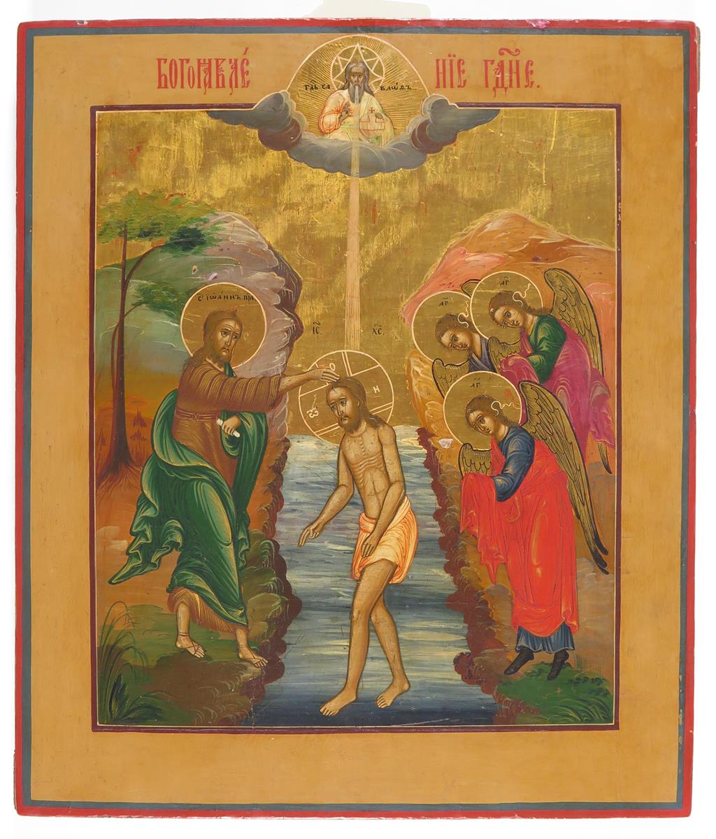 Russian School 19th Century Icon of The Baptism of Christ Painted and gilded on panel 35.5 x...