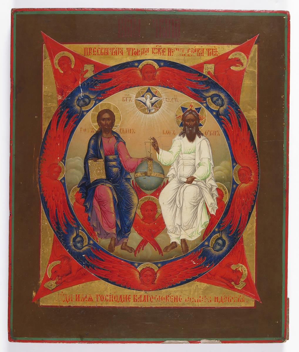 Russian School 19th Century Icon of the 'New Testament' Holy Trinity Painted and gilded on panel...