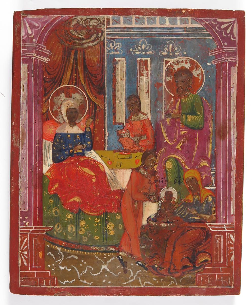 Russian School Icon of the Birth of the Mother of God Painted on panel 20.5 x 17cm; 8 x 6¾in...