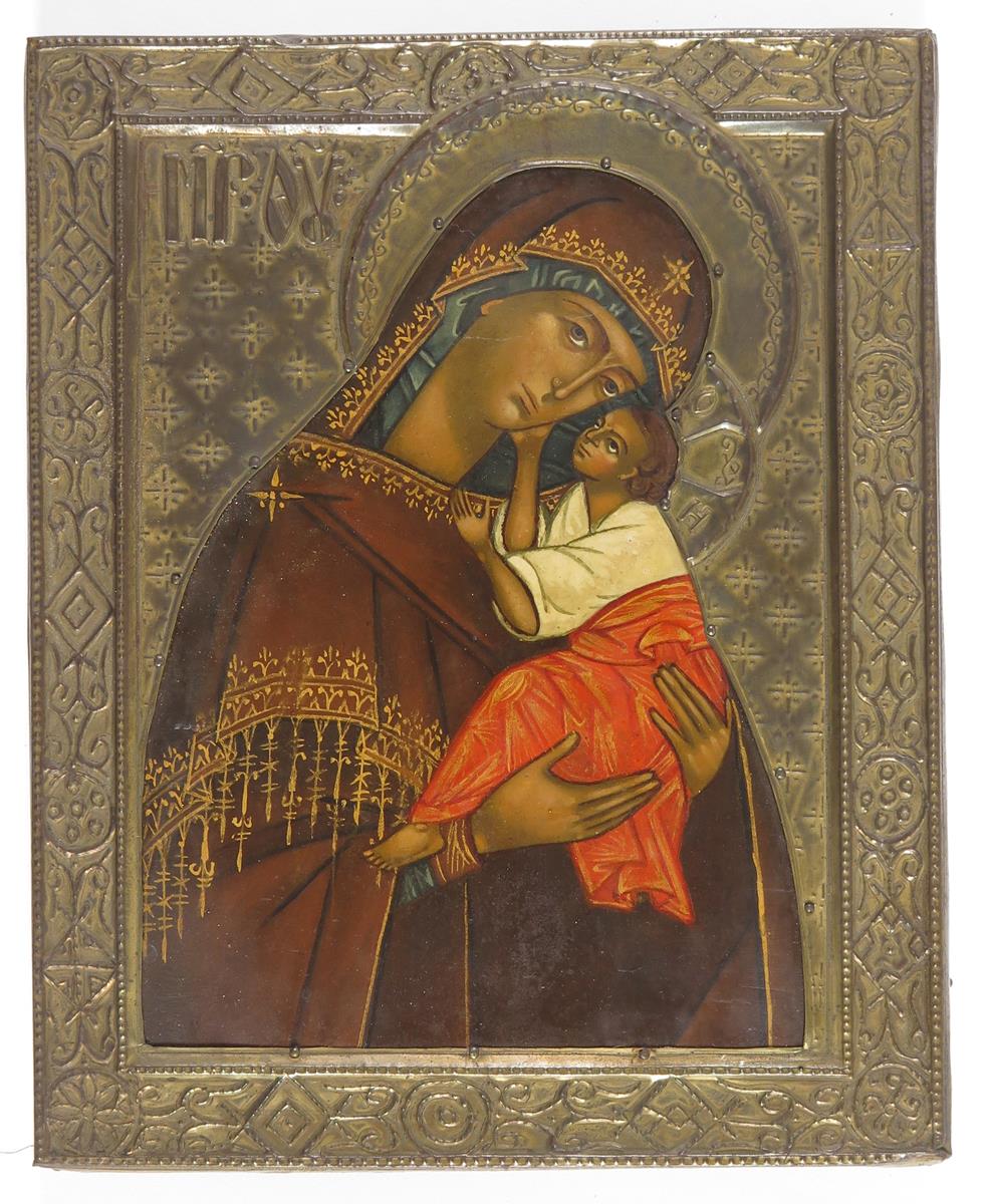Russian Orthodox School 20th Century Icon of the Mother of God Eleousa [of Tenderness] Covered...