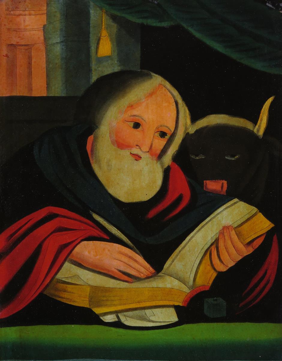 Continental School 19th Century St. Luke Glass painting/print in a rosewood frame 35 x 25cm; 13¾...