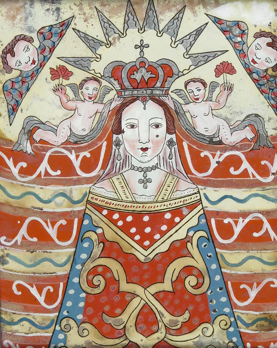 Glass painting with 5 other reverse glass prints and paintings of religious subjects