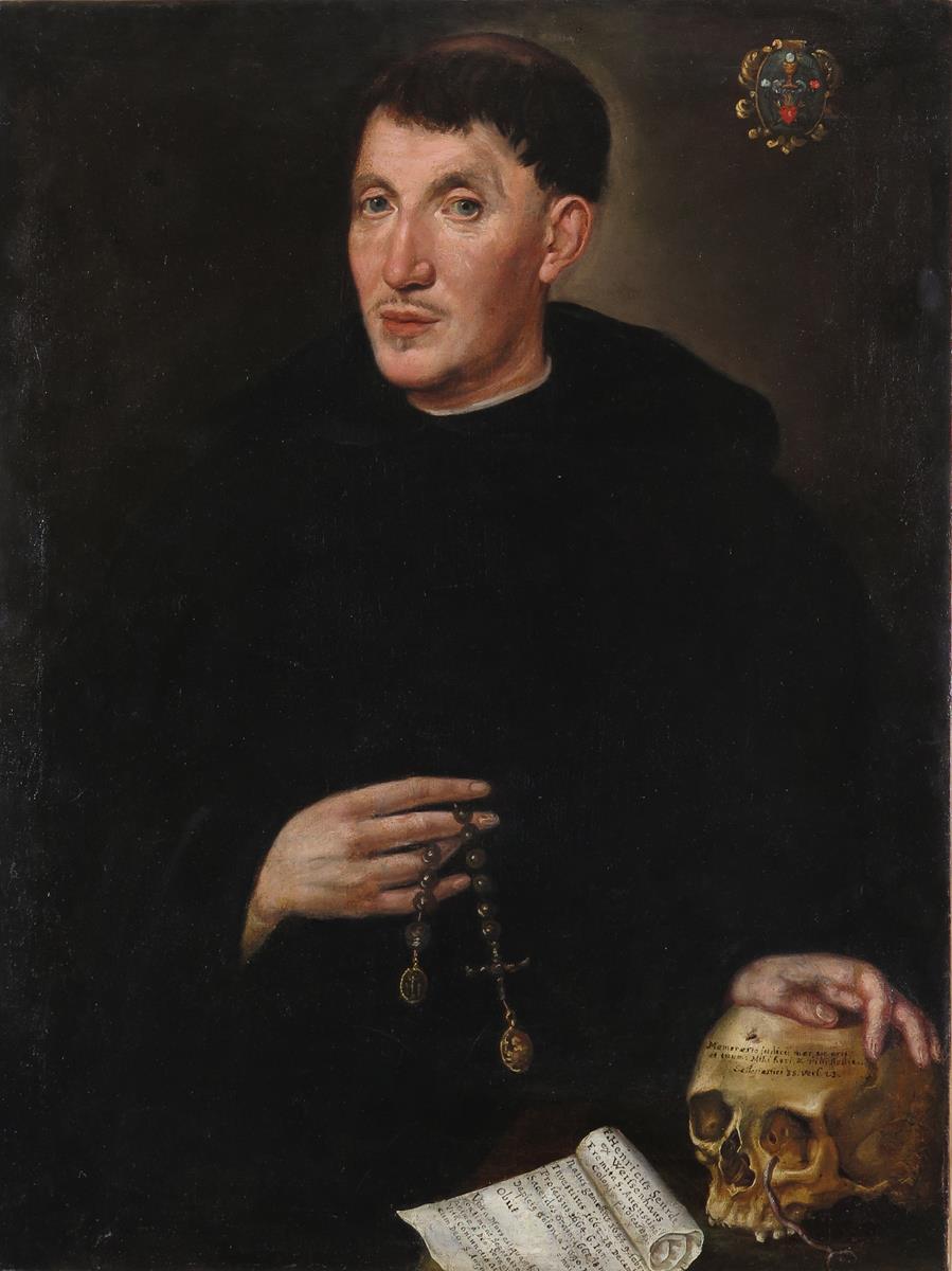 Portrait of an Augustinian monk with a skull, a rosary and a scroll