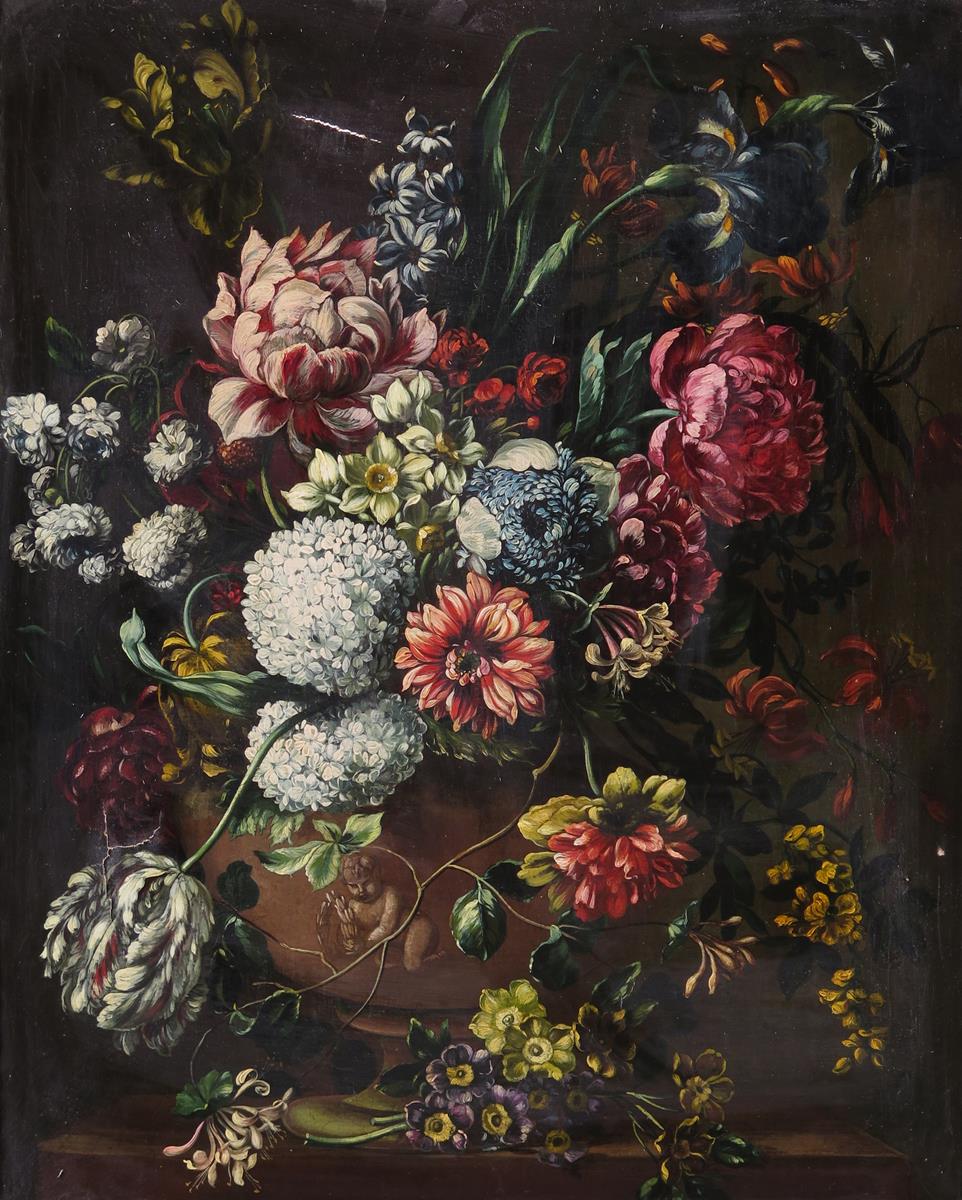 Follower of Jean Baptiste Monnoyer Still life of summer flowers in an urn Oil on canvas 58 x...
