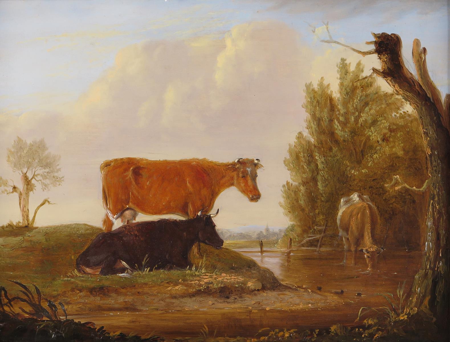 Edmund Bristow (1787-1876) Cattle by a river Signed and dated 1831 (below frame) Oil on panel 24...