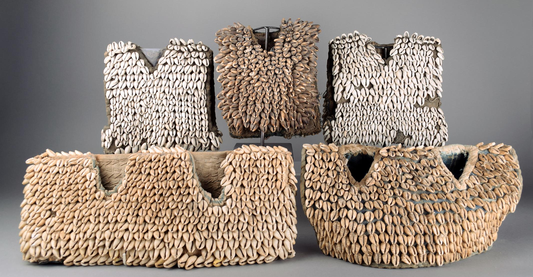 Five Yoruba Ibeji coats Nigeria cowrie shells and cloth