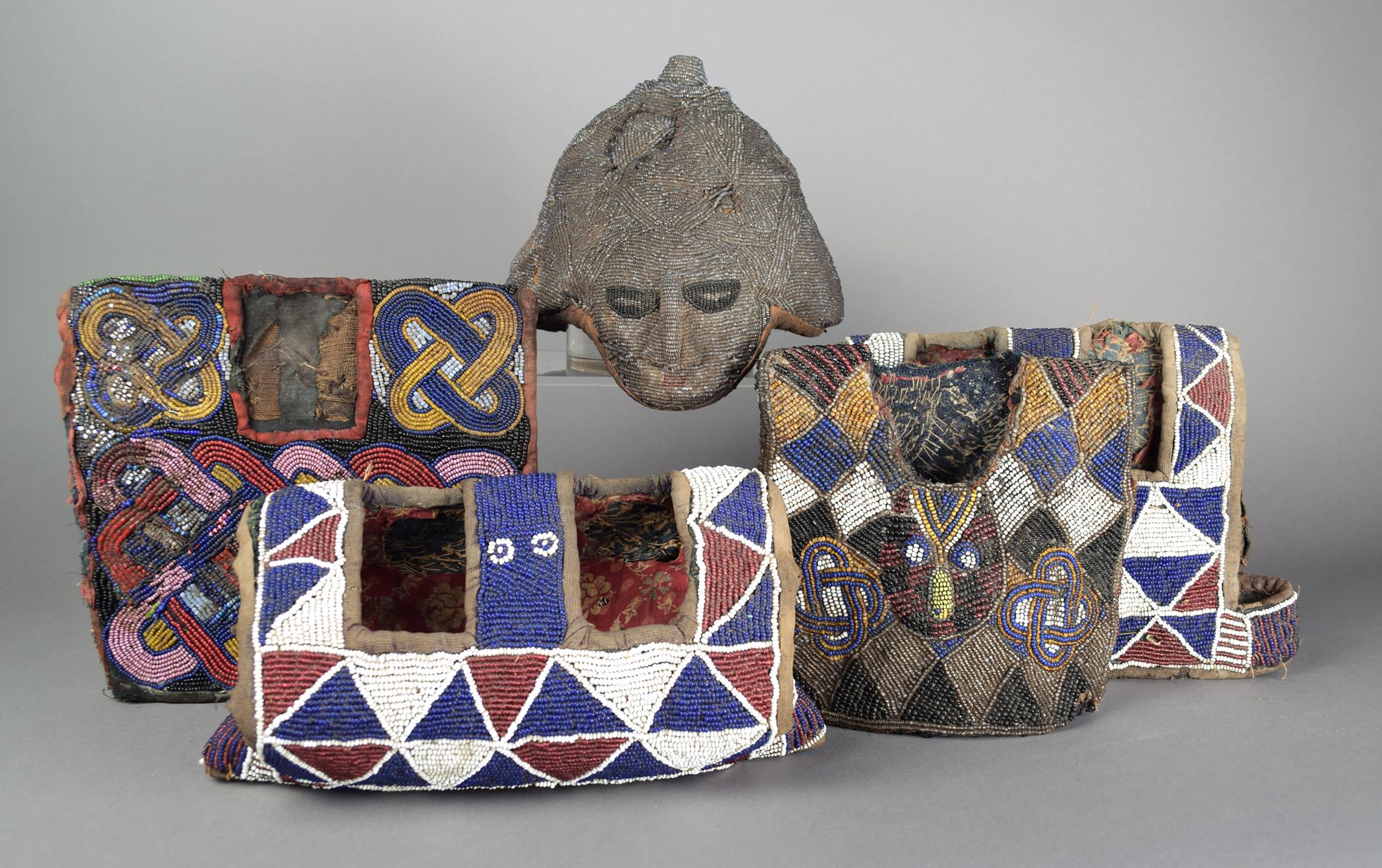 Four Yoruba Ibeji coats Nigeria beadwork and cloth