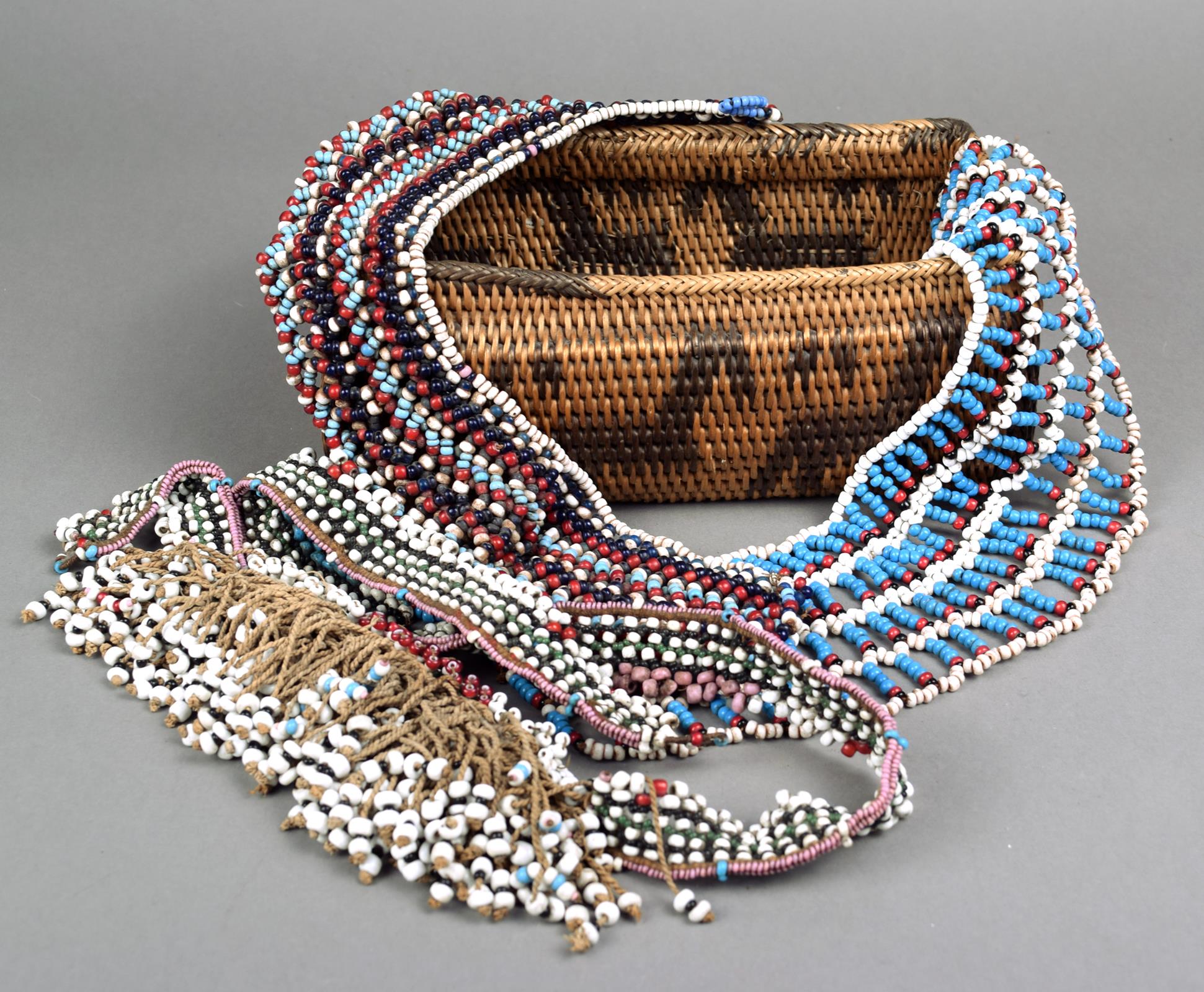 and three Zulu beadwork pieces; two necklaces and a waistband. (4)