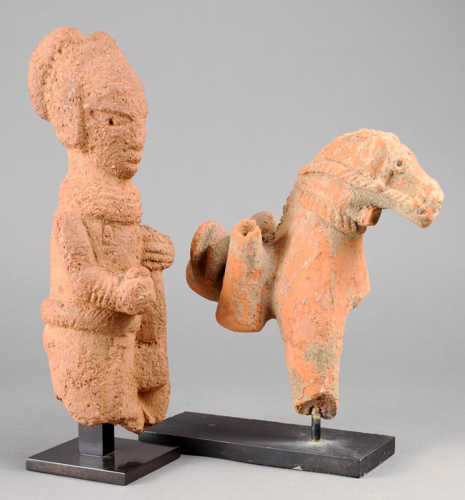 and an Afghanistan terracotta fragmentary horse, 20cm high, on a stand. (4)