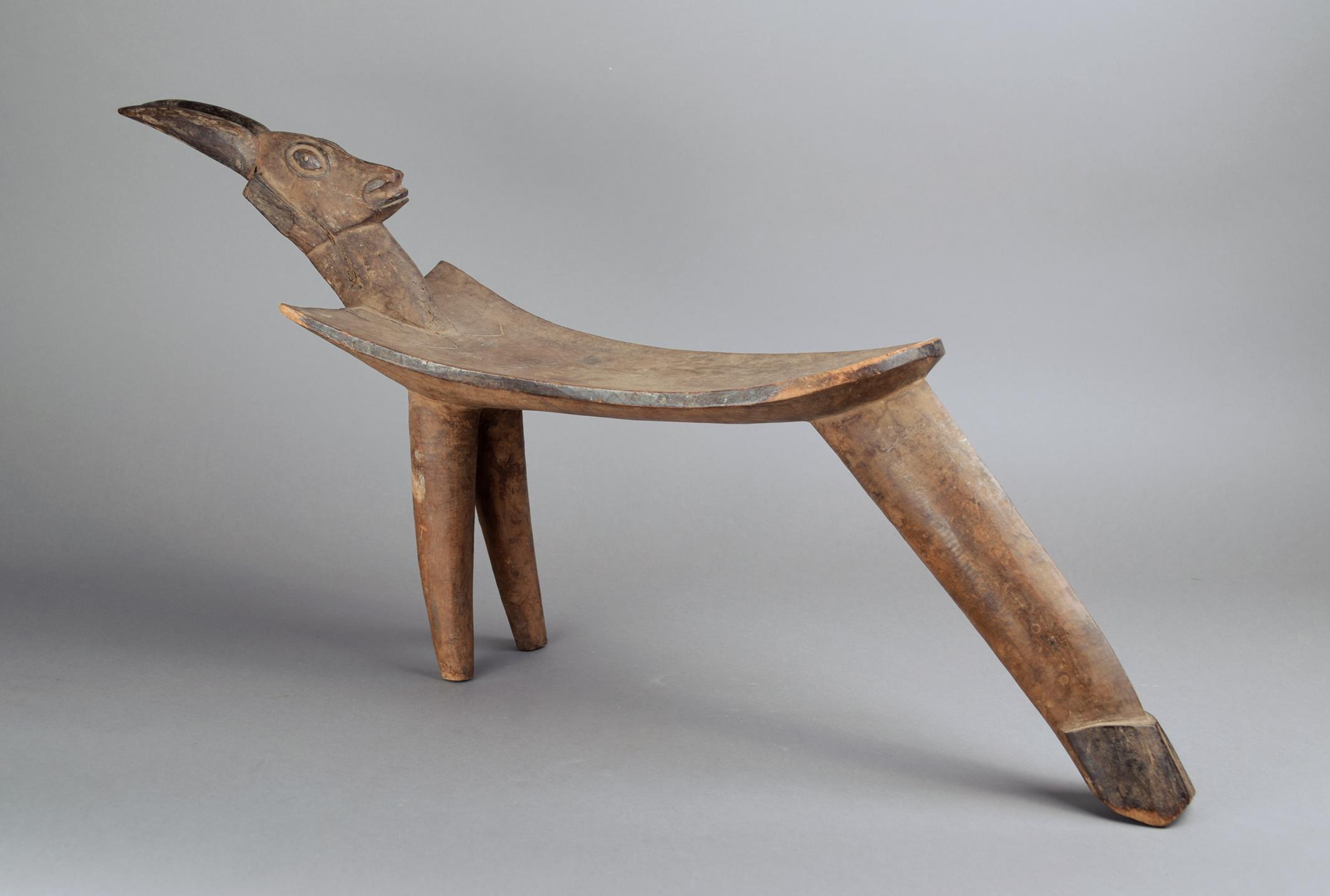 A Lobi stool Burkina Faso wood with charred ebonised highlights
